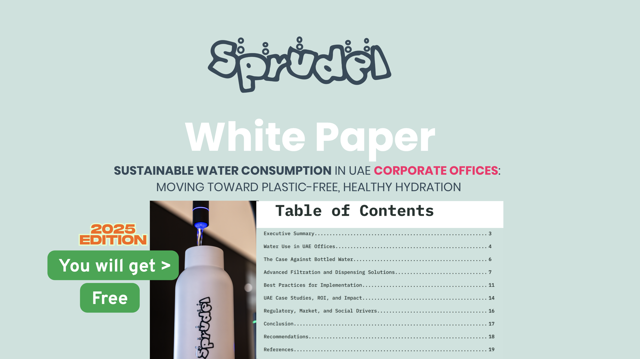 Curious how hydration impacts performance, wellbeing and satisfaction in the workplace? Our exclusive white paper, “SUSTAINABLE WATER CONSUMPTION IN UAE CORPORATE OFFICES: MOVING TOWARD PLASTIC-FREE, HEALTHY HYDRATION” reveals the latest research, actionable strategies and real-world case studies to help your business thrive.